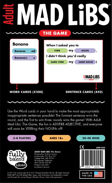 The game consists of multiple rounds. During each round, a Sentence card is revealed and read aloud. Next, all players will choose Word cards from their hands to call in all the blanks in the sentence. When all players are ready, each player will read the sentence with their chosen words called in, then everyone votes. You cannot vote for your own, and whoever gets the most votes wins a point for that round. The game continues until someone gets 3 points!