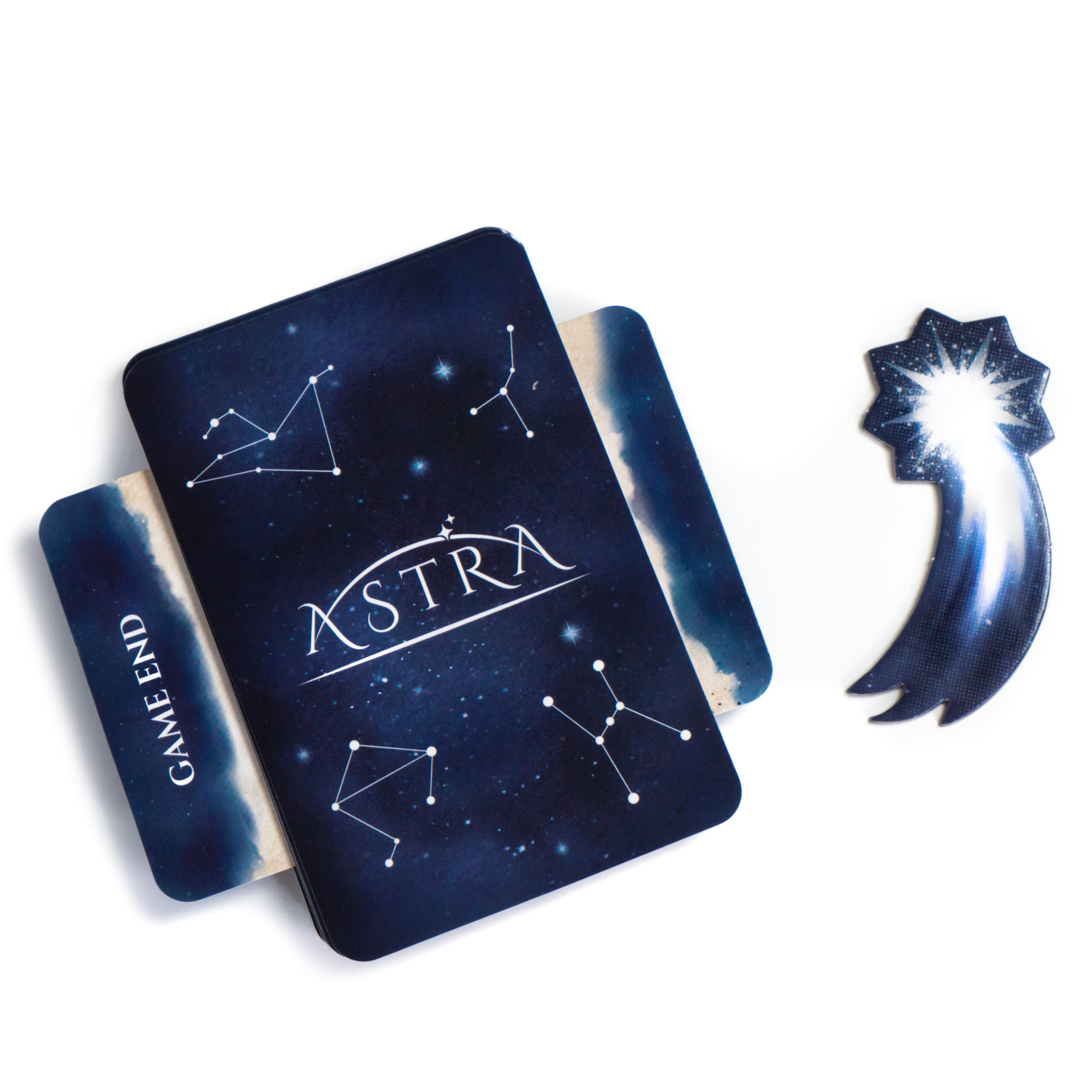 Astra is a clever mix of tactics and strategy, with a streamlined and intuitive rule set that makes it easy to pick up and quick to play. A game of Astraconsists of continuous player turns until a certain number of Constellation cards are taken, when, after an endgame scoring, the player with the most Fame points wins.