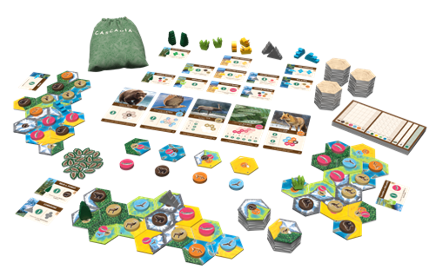 An expansion for Cascadia—more puzzly tile-laying and token-drafting featuring the habitats & wildlife of the Pacific Northwest. In the Landmarks expansion for Cascadia, players create sprawling habitats and place beautiful natural landmarks within them. Landmarks give each environment its own look and feel, and provide dynamic end game scoring bonuses! In addition to the Landmarks module, this expansion includes more unique Wildlife Scoring Cards and Habitat Tiles to add variety and enough components to play Cascadia with 5-6 players!