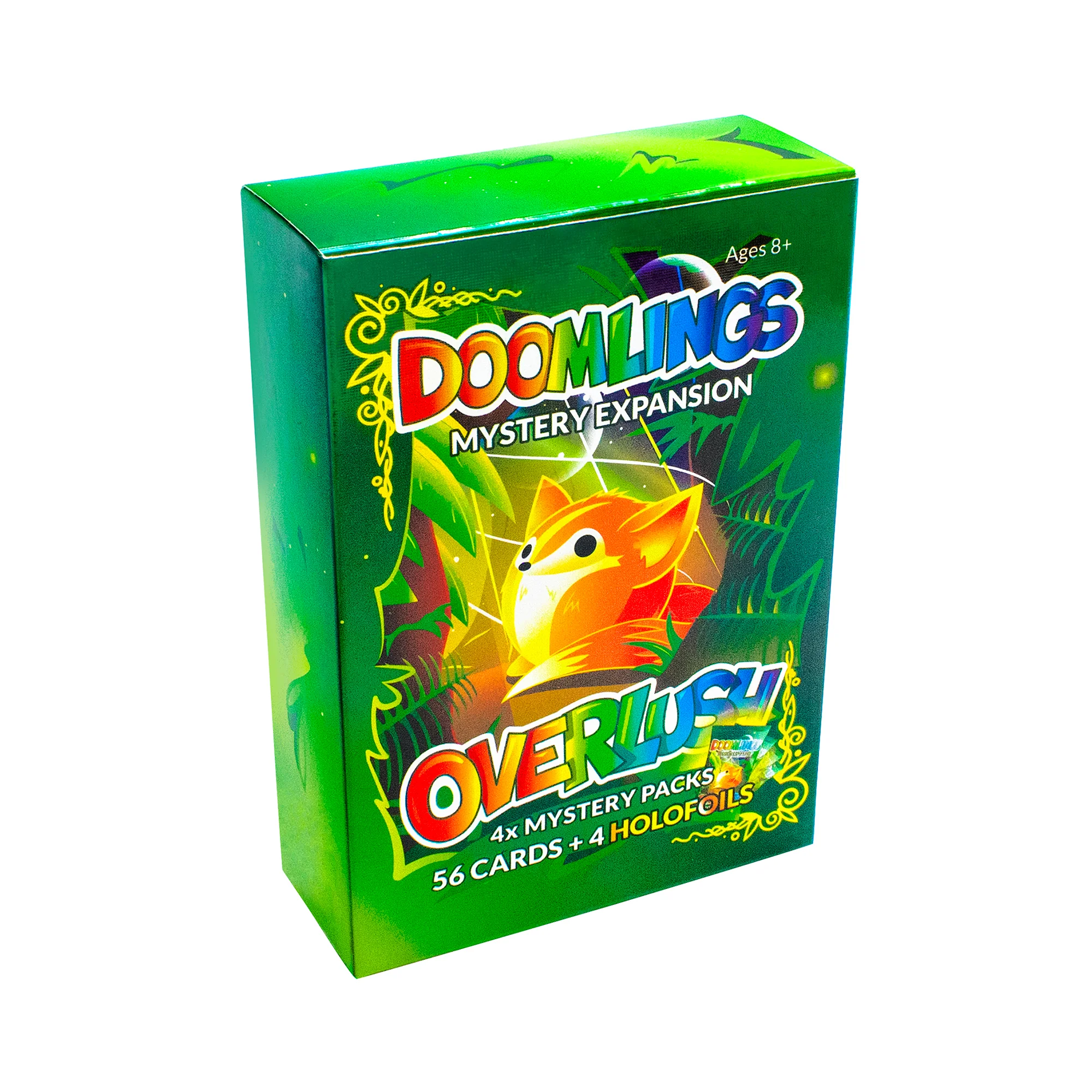 Discover the jungles of Enderas with the Doomlings: Overlush® Mystery Expansion®! One box contains 4x mystery packs, each with 14 game cards + 1 collectible holofoil, for a total of 60 cards.