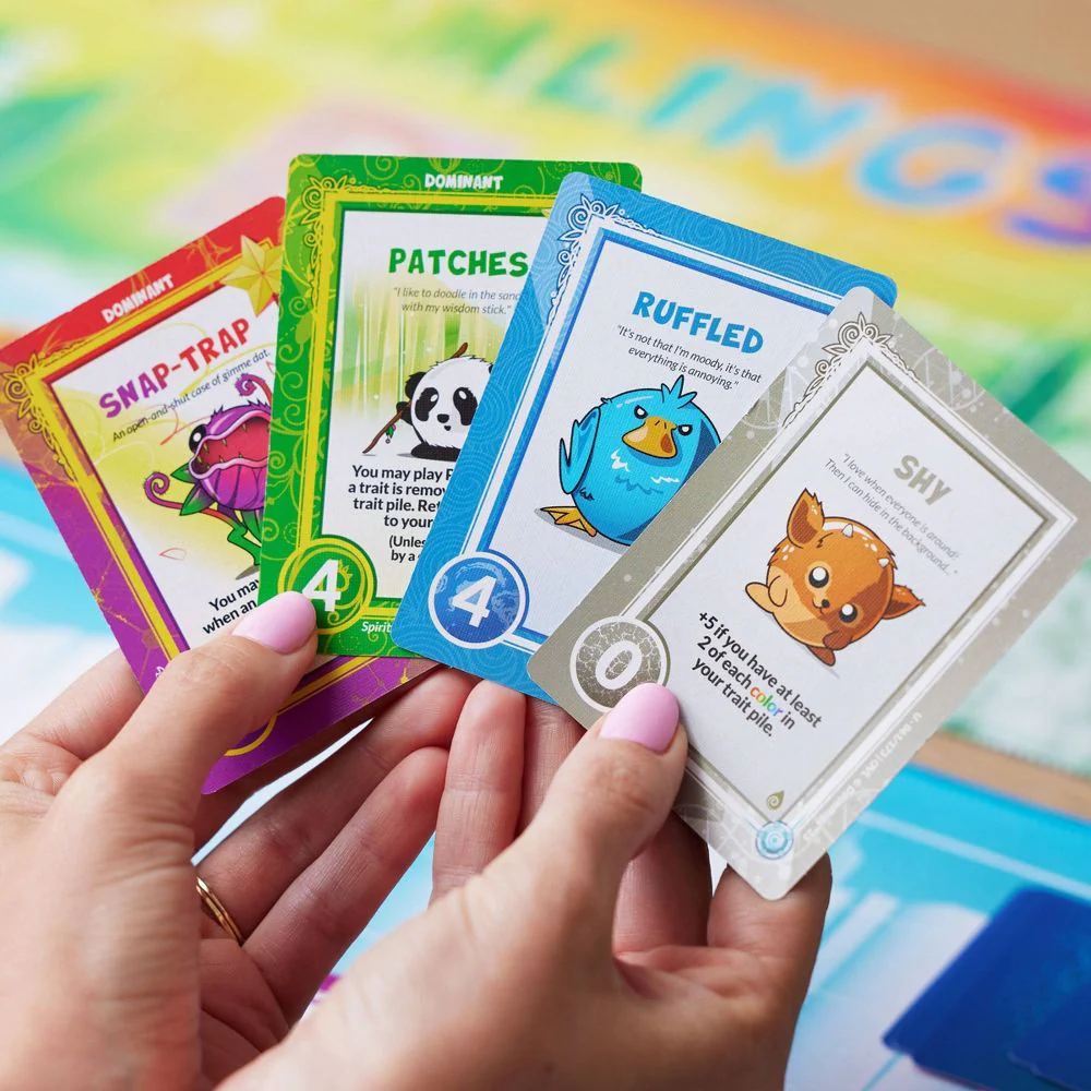 Doomlings: Overlush cards come in different rarities, all designed to be seamlessly added to your Doomlings base game (required to play). Survive the jungles of Enderas with exotic Traits like Nectar, through harrowing Catastrophes like Choking Vines, and live to see another beautiful Age like Summer Solstice. PLUS: introducing sub-collections like Tropical Frogs, Mushrooms, Rodents and Poisons!