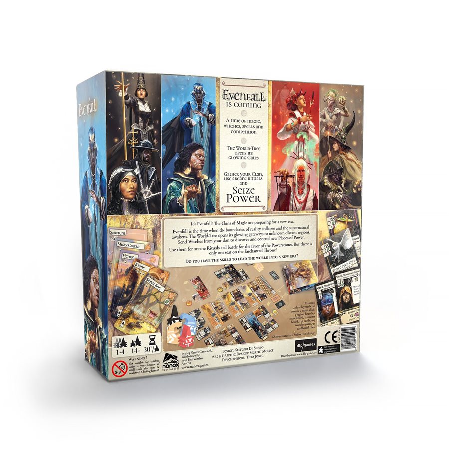It’s Evenfall, and the Clans of Magic are preparing for a new era. Evenfall is the time when the boundaries of reality collapse and the supernatural awakens. The World-Tree opens its glowing gateways to unknown distant regions. Send Witches from your clan to discover and control new Places of Power. Use them for arcane rituals and battle for the favor of the Powerstones. But there is only one seat on the Enchanted Throne! Do you have the skills to lead the world into a new era?