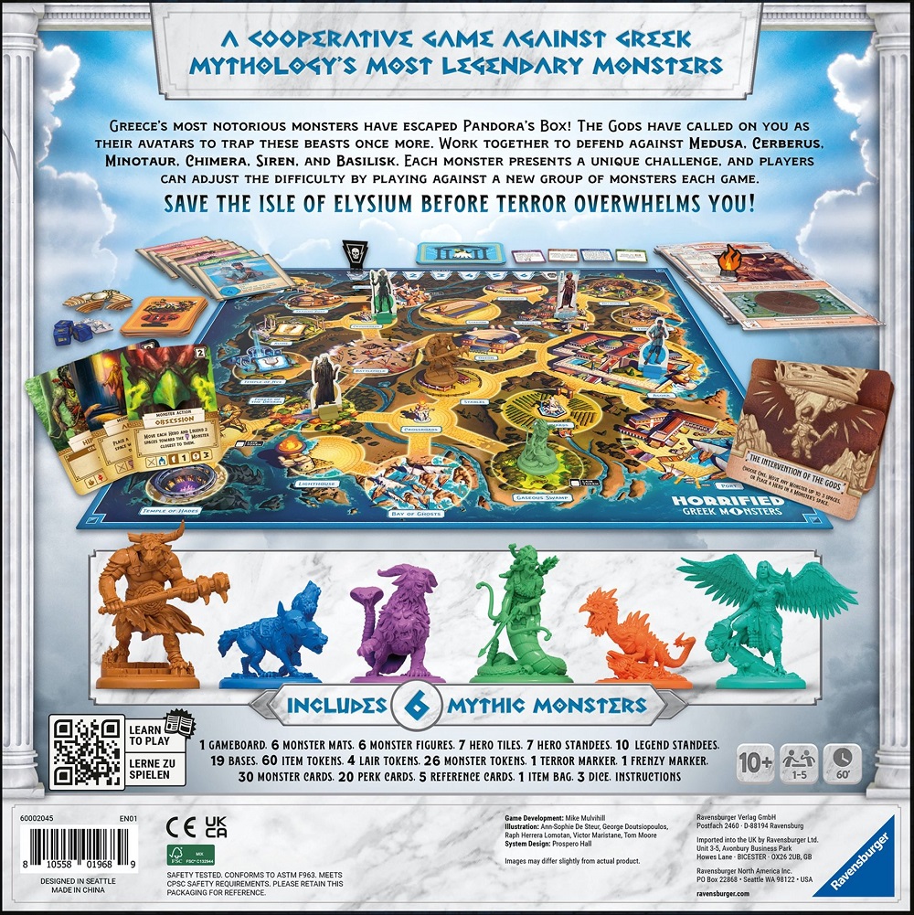 Horrified: Greek Monsters is a standalone game that features gameplay similar to 2019’s Horrified. In this co-operative game, players become avatars of the Greek gods and must work together to re-capture these monsters.