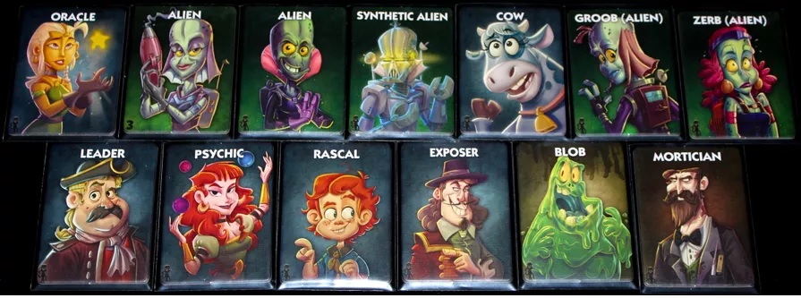 In One Night Ultimate Alien, strange beings from the heavens have infiltrated your small village, bringing fearsome futuristic technology and an insatiable appetite for both Villagers & Cows. Fortunately, the village has many powerful inhabitants, most of whose goal is to save it from the alien invaders.