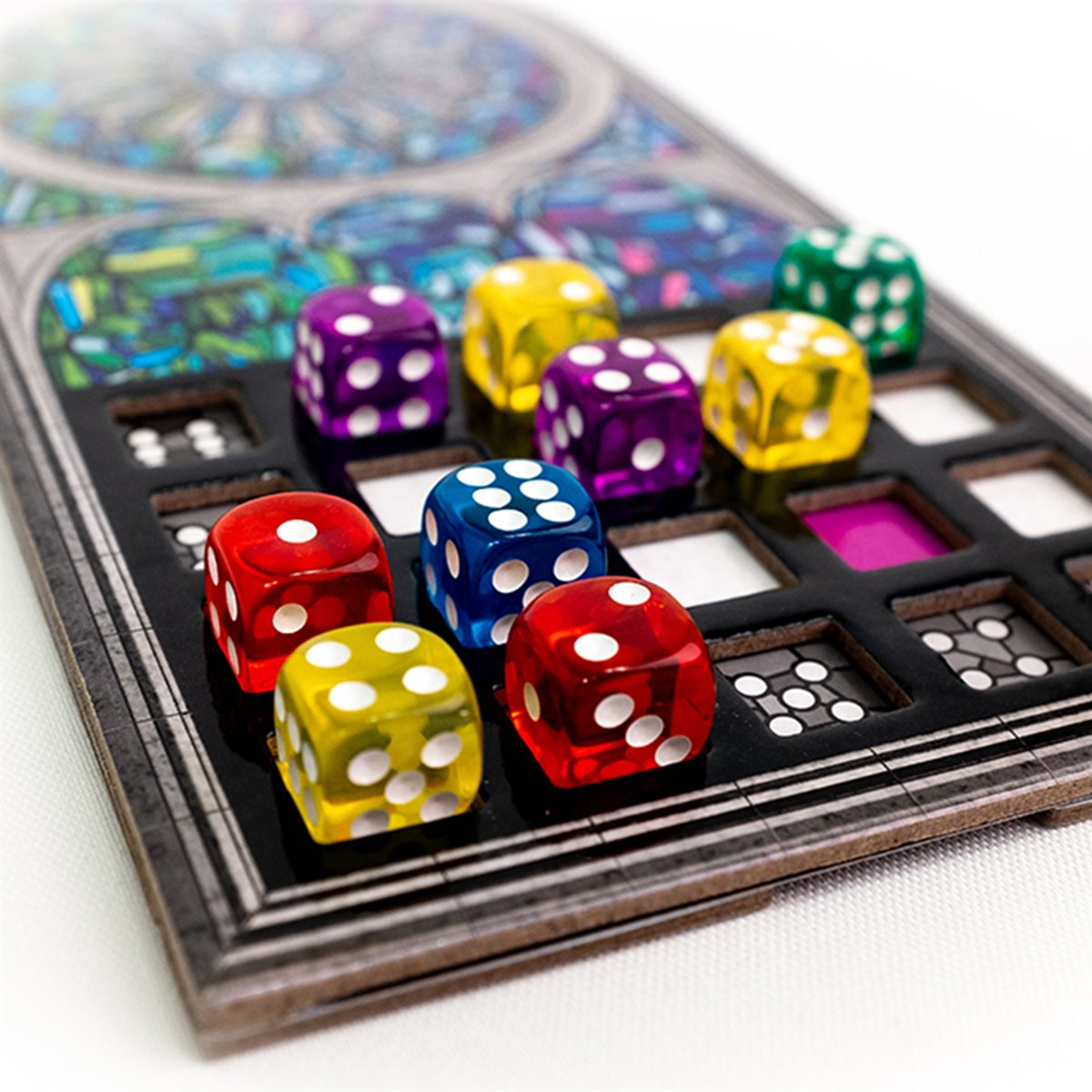 Draft dice and use the tools-of-the-trade in Sagrada to carefully construct your stained glass window masterpiece.