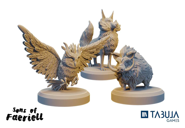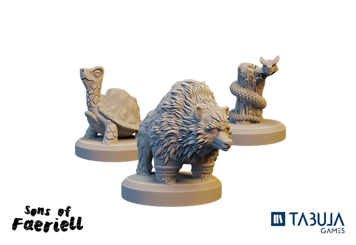 Players guide different Tribes of Weybits, the youngest sons of Faeriell. They are tiny and industrious humanoids, with the common goal to preserve the environment from Corruption and help the Great Guardians, the giant keeper animals that watch over the land since remote times. The customization of the Weybit Heroes starts from the beginning with the selection of their Tribe Masks, original items which can be worn by the minis. Each color of those masks provides a different specialization. New Heroes can be dressed and upgraded during the game with the acquisition of Perks, additional abilities that make every character unique. Weybits can become the most efficient helpers to the Great Guardians, mastering the knowledge of nature and learning to fight Corruption.