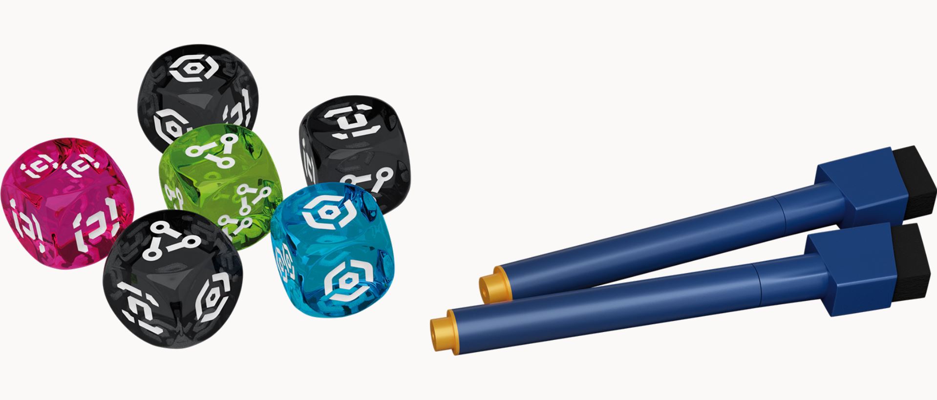 Twilight Inscription, an epic roll-and-write game for one to eight players, offers an experience unlike anything Fantasy Flight Games has done before. With a limited pool of resources at your disposal, you’ll need to carefully manage Navigation, Expansion, Industry, and Warfare as you amass victory points and earn your right to the throne on Mecatol Rex. Will your faction become the new rulers of the galaxy? Or will your fledgling empire fade into obscurity? Anything can happen in this strategic, infinitely-replayable game!