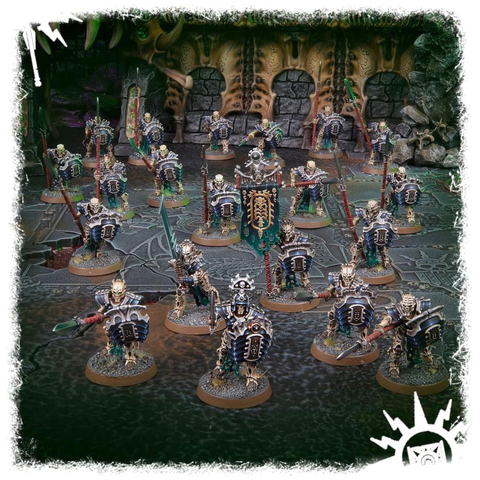 The Mortek Guard are soul-constructs created to dominate the battlefield. Armed with life-draining nadirite weapons and shaped from impenetrable osseous armour, they grind the enemy to dust beneath their relentless march.